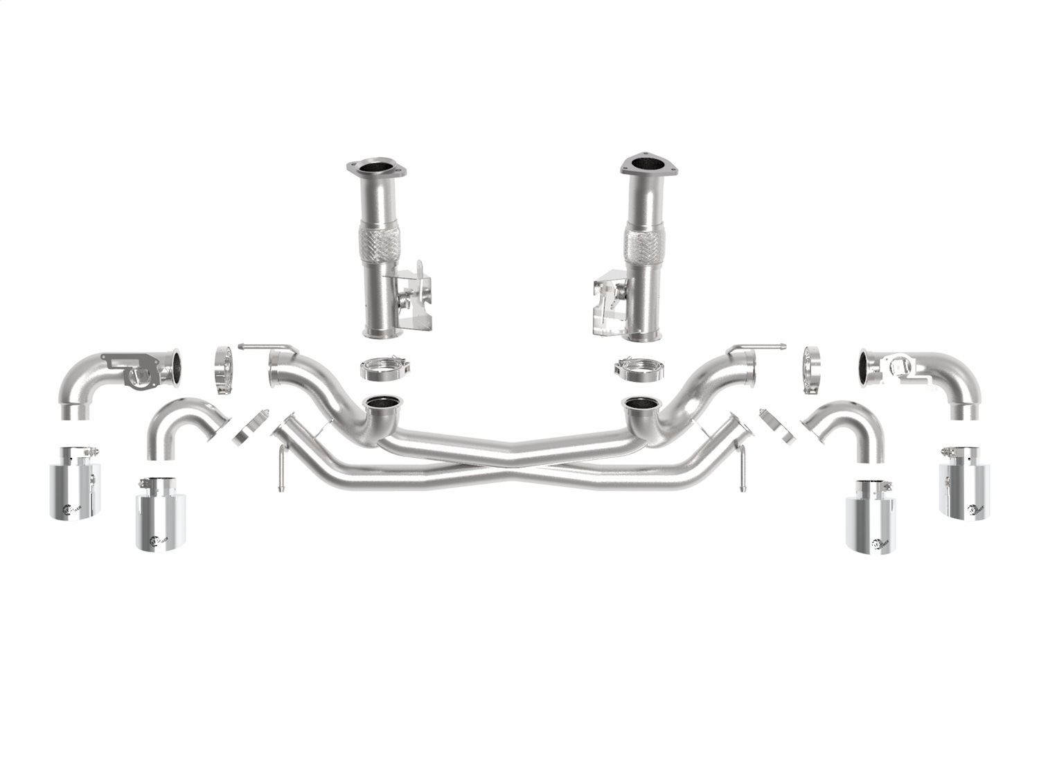 This system produced gains of up to +7 HP and +5 lbs. x Ft. TQ., as measured on our in-house dyno. This cat-back exhaust system is constructed of 3 IN to 2-1/2 IN mandrel-bent brushed finished 304 stainless steel tubing for maximum strength and durability. This system produces an aggressive sound unleashing all available horsepower and torque. Finishing off this exhaust system are quad 4-1/2 IN diameter polished stainless steel clamp-on exhaust tips. The tips features a laser etched aFe POWER logo for a unique style. Utilizing factory style flanges and hangers this system is a direct bolt-on system, which requires no cutting or modifications for a hassle-free installation. This cat-back exhaust system uses a heavy duty flex pipe with an internal interlock liner for added strength and durability. A mitered merge x-pipe is used to balance and evenly distribute exhaust pulses traveling through the exhaust system, minimizing exhaust drone and maximizing scavenging. This cat-back exhaust system incorporates factory style NPP dual mode & AFM (active fuel management) exhaust valves which use the factory exhaust valve motors (not included). The valves helps regulate, direct and control the flow of exhaust gases by opening, closing, or partially obstructing passageways depending on throttle position for maximum performance. Utilizing state-of-the-art computer-aided design technology, this exhaust system is designed for custom, high tolerance factory fitment. 100% TIG-Welded for race-proven strength and durability.