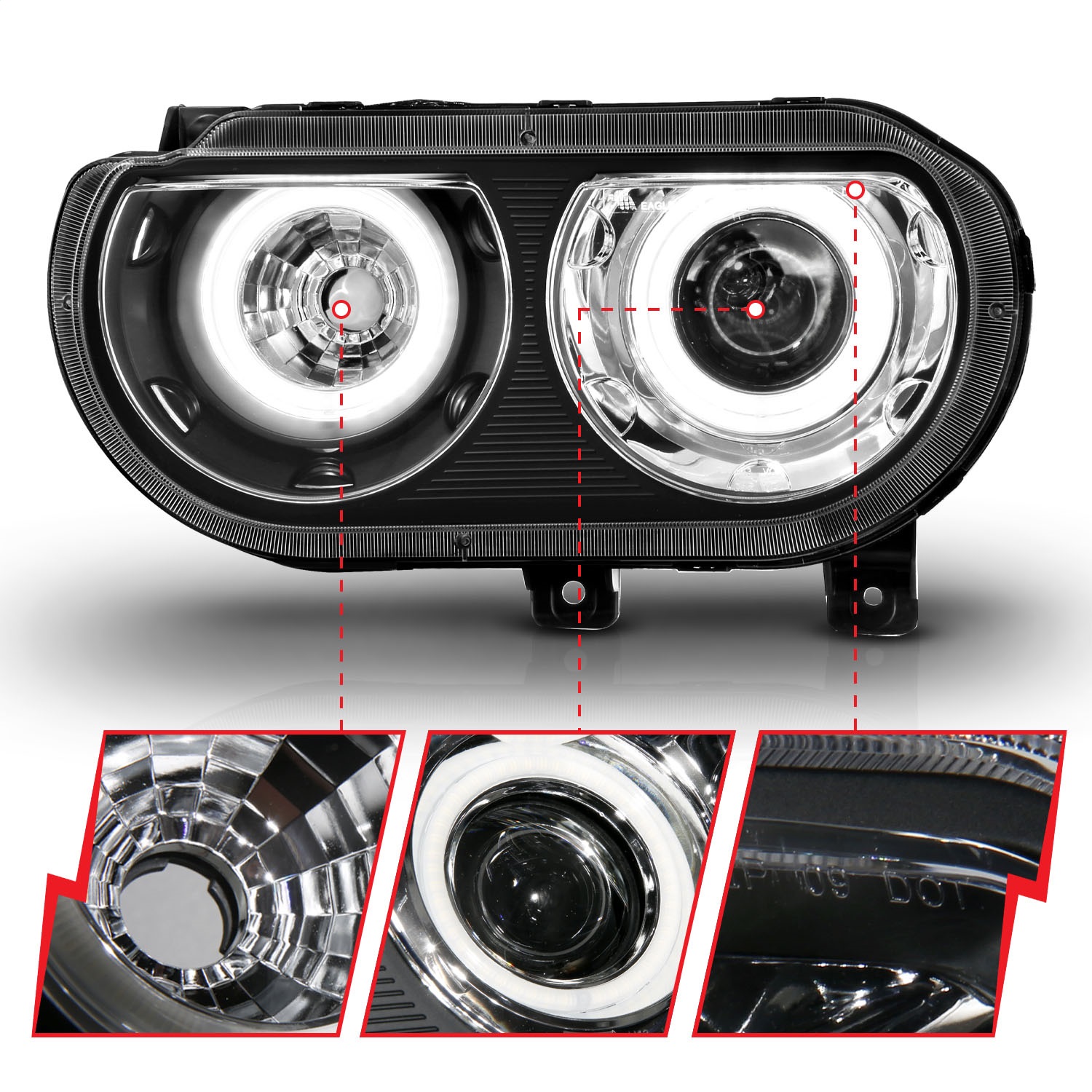 2009 | Dodge | Challenger | SRT8 Coupe 2-Door | 6.1L 6059CC 370Cu. In. V8 GAS OHV Naturally Aspirated | Clear Lens; Black Housing; Pair; CCFL, Does Not Fit Models w/Factory HID Bulbs |