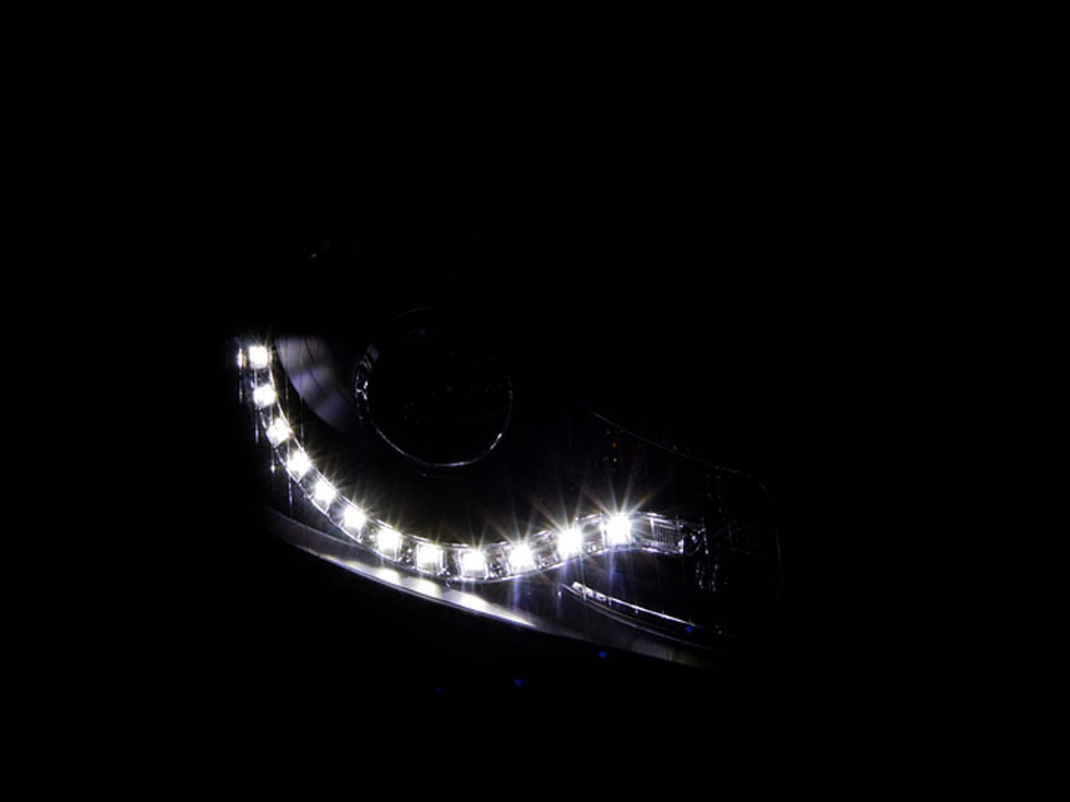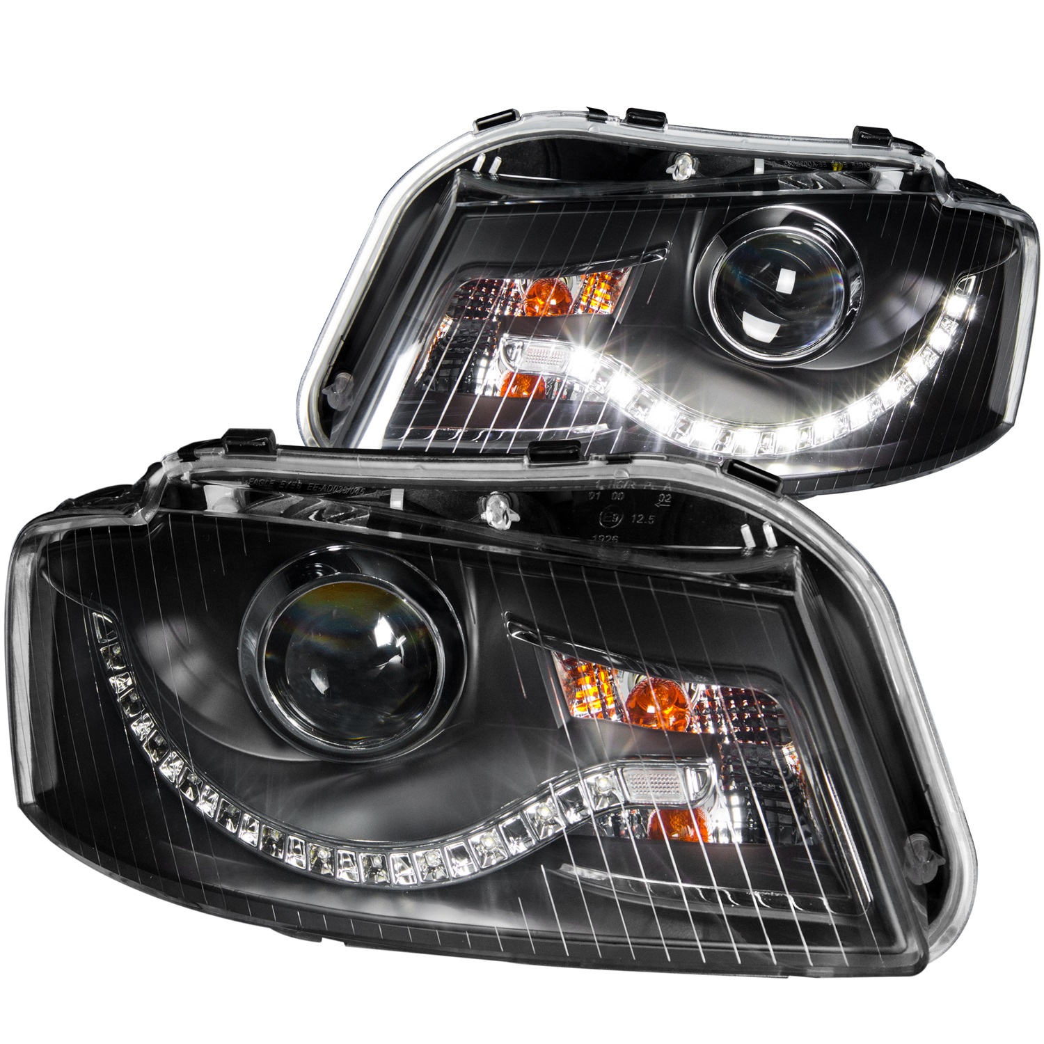 Projector Headlight Set, Clear Lens, Black Housing. R8 Style, For Use w/Non HID Models Only, . Guaranteed To Improve Your Vehicles Appearance. Rigorously Tested For Fit And Function. Simple Plug And Play. No Modifications Required. Easy Installation Using Common Hand Tools. Uses Stock Mounting Locations And Hardware. D.O.T. Compliant To S.A.E. Standards. Sold As A Pair. 8P Body Type Only. Does Not Fit Models With Factory HID Bulbs.