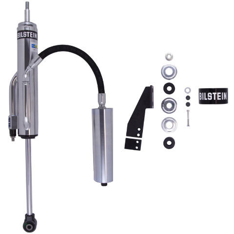 Bilstein B8 8100 (Bypass) is a direct fit, position sensitive, damper for light trucks and SUV’s. These motorsports inspired shock absorbers utilize a dual tube externally adjustable bypass design. B8 8100 (Bypass) feature “Incremental Flow” bypass adjusters, allowing for finite and incremental changes for rebound and compression. The shocks utilize a bottom hose, remote reservoir exit port, delivering increased compression control during the full cycle. The remote reservoir is supplied with a bolt-on aluminum anodized chassis mount for an easy fitment. BILSTEIN B8 8100 (Bypass) will maximize the driver experience, offering unparalleled ride comfort and incredible bottom out control.