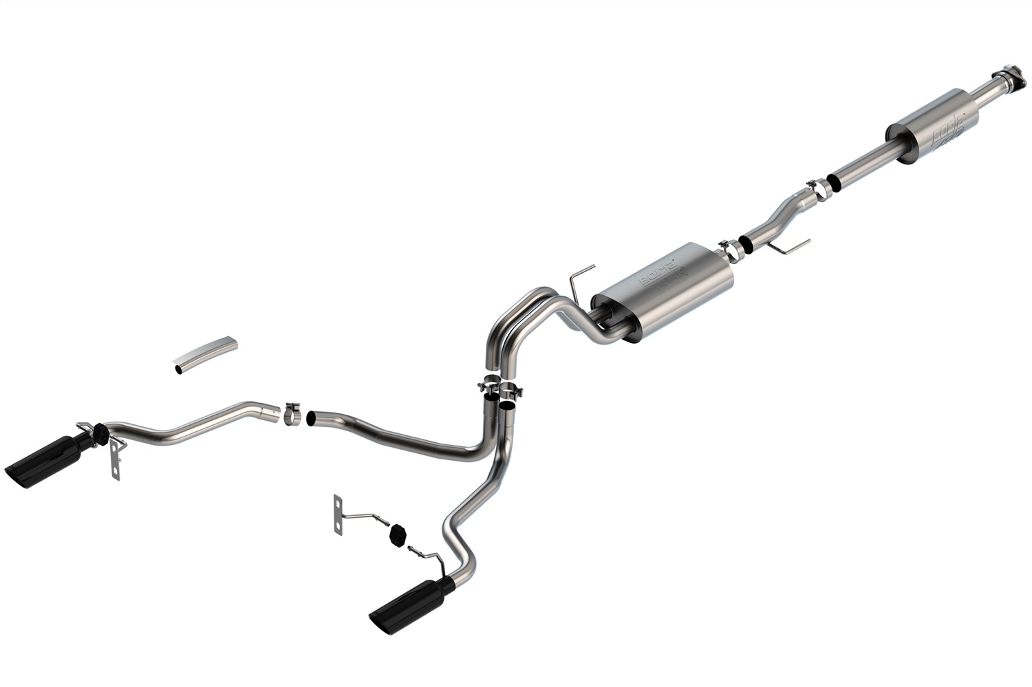 The Borla(r) Cat-Back(tm) system 140879BC was specifically designed to enhance the power and sound of the Ford F-150 equipped with 3.3L engine. It includes black chromed T-304 stainless steel tips and a split rear exit configuration. The entire system is made of T-304 stainless steel and utilizes computer numerical control (CNC) manufacturing techniques that ensure an accurate fit. This system features the "ATAK(r)" sound level that gives you our most aggressive sound level with no drone. It is also available with bright chromed tips (part number 140879). There are also systems available for the 3.3L F-150 that offer different options for sound level, tip finish and tip exits. All this is backed by our unsurpassed Million Mile Warranty., System Features:, Cat-Back(tm) System, Split Rear Exit, Black Chrome On T-304 Stainless Steel Tips, ATAK(r) Sound Level, T-304 Stainless Steel Construction, Bolt-On Installation, Million Mile Warranty