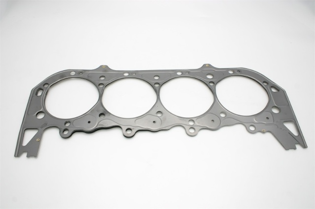 Comprised of multiple embossed layers of stainless steel with the outer layers utilizing a Viton rubber coating. Compressed thickness is 0.086". 4 Bolts in Valley. Cometic MLS (Multi-Layer Steel) Head Gaskets provide maximum sealing performance for todays high output engines and require no sealants. MLS gaskets are ideal for both aluminum heads to aluminum blocks and aluminum heads to cast iron blocks. They can withstand the shearing force created by the two materials. MLS gaskets have increased strength because they are comprised of multiple layers of stainless steel; which also creates the ability to rebound and resist corrosion. The outer layers are embossed and coated on both sides with Viton (a flour elastomer rubber based material that is heat resistant to 250 C/ 482 F). Viton is designed to meet the demands of a variety of harsh sealing environments, load conditions, and surface finishes. The center or shim layer is uncoated stainless steel, which can be varied to accommodate multiple thickness requirements.