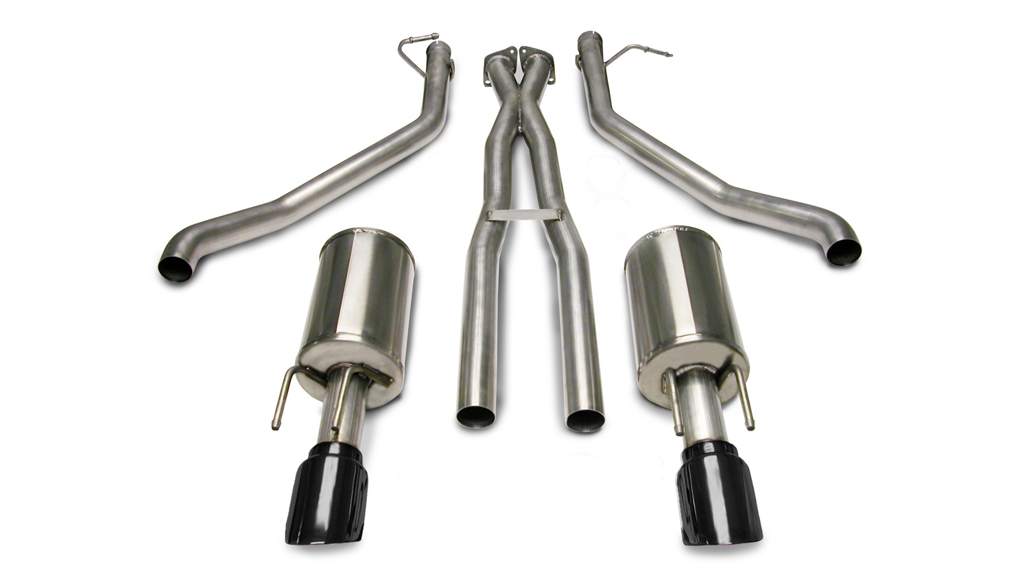 Sport Cat-Back Exhaust System; Dual Rear Exit; 2.5 in. Dia.; Incl. X-Pipe/Muffler/Pipes/Clamps/Single 4 in. Polished Black PVD Pro-Series Tips;