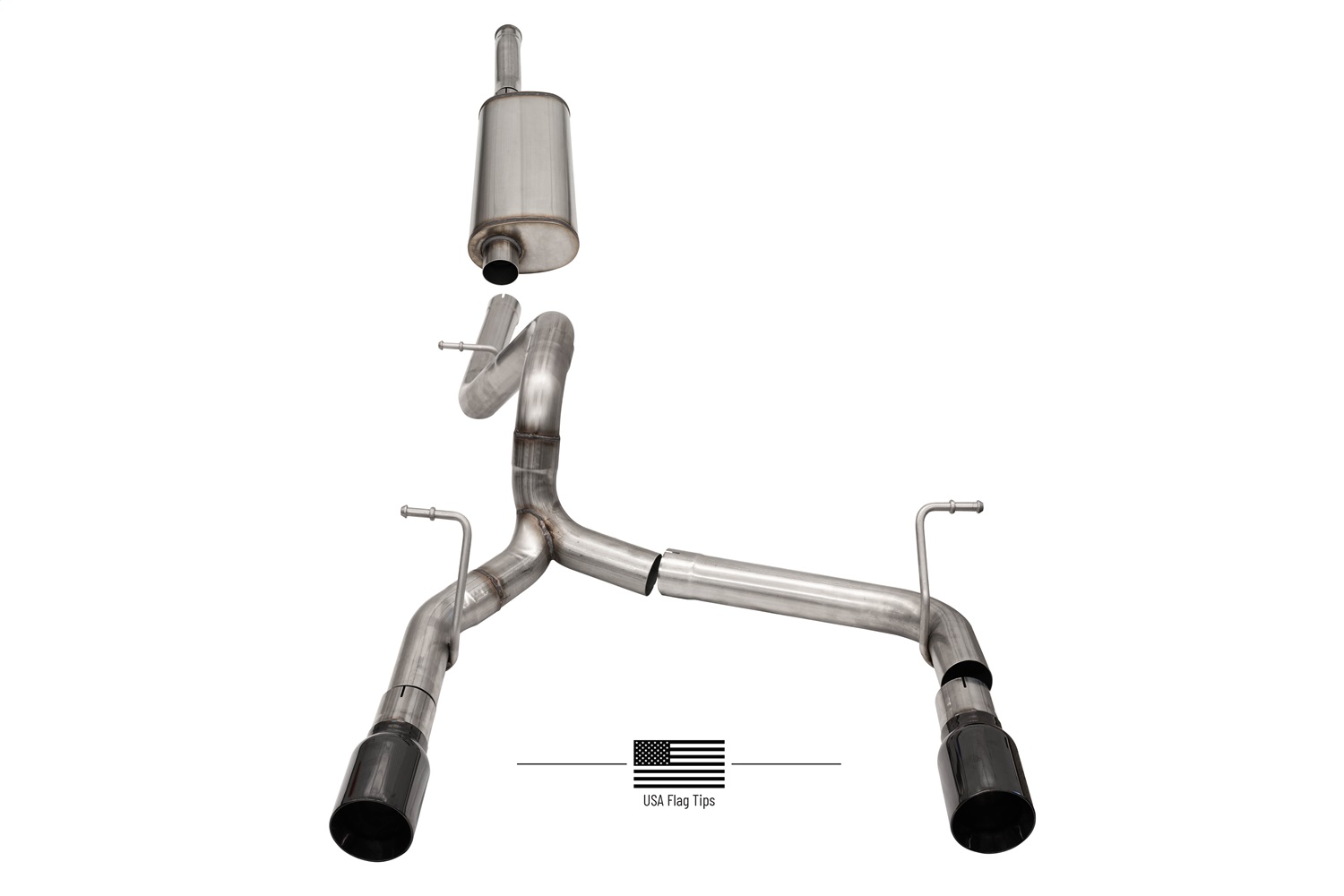 Sport Cat-Back Exhaust System; Dual Rear Exit; 2.75 in. Tip Inlet Dia.; 4.0 in. Tip Outlet Dia.; Black PVD Straight Tip Finish; w/USA Logo;