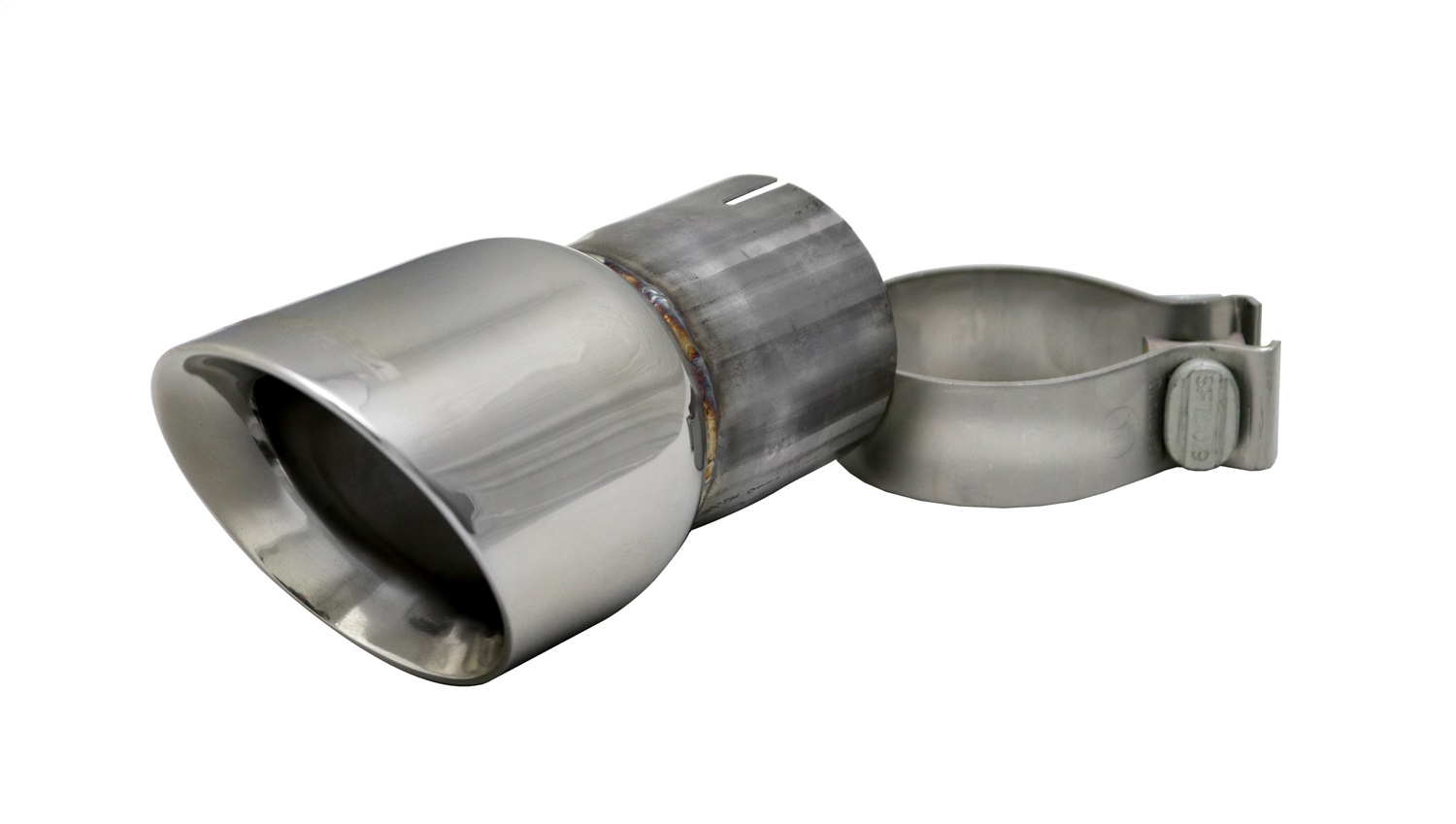 Exhaust Tip Kit; Universal; Single 3.5 in. Angle Cut; Round; No Resonator; 7 in. Overall Length; 2.75 in. Dia. Pipe; Slash Cut; Clamp Incl.; Polished;