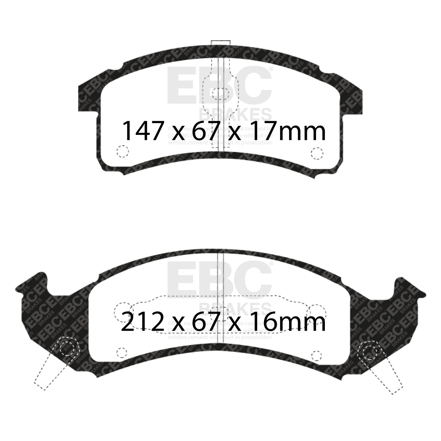 There are TWO reasons our customers love Redstuff, First because they are the lowest dust pad we have encountered by reducing dust by 60-90-percent. Plus the minimal dust you see is very easily removed with a simple sponge wash as it contains no steel fibre particles as in ALL OTHER pads. Second they brake like an alligator right from cold (as good as Original pads or better) and just get better as they heat up.This material is a Synthetic Fiber based brake compound enhanced with ceramic particles. If you have previously tried EBC redstuff (pre-ceramic compound) this material is light years ahead. It lasts longer; it brakes better and is quieter. Being a hard wearing pad, bed-in times can be as long as 1000 miles and drivers must be patient until the pad takes up the shape of their disc (brake rotor). This is a truly impressive fast road pad for repeated heavy braking.It emits far less dust than semi-metallic pads and has been proven to stop a passenger car/sedan/sport compact/hot hatch 13 metres quicker than OEM pads from 100mph/160kph. Features EBC Brake-In surface coating which conditions rotor surface and accelerates pad bed-in. Nominal friction coefficient 0.5 with approx. 50-percent dust reduction.Most EBC Red Ceramic pads are approved to ECE R90 brake safety regulation.