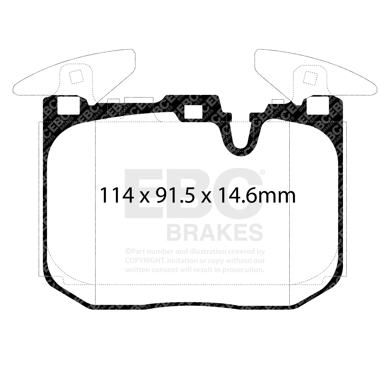 Yellowstuff Street And Track Brake Pads; FMSI Pad No. D1609; Pad Dimensions: 114 x 91.5 x 14.6mm;