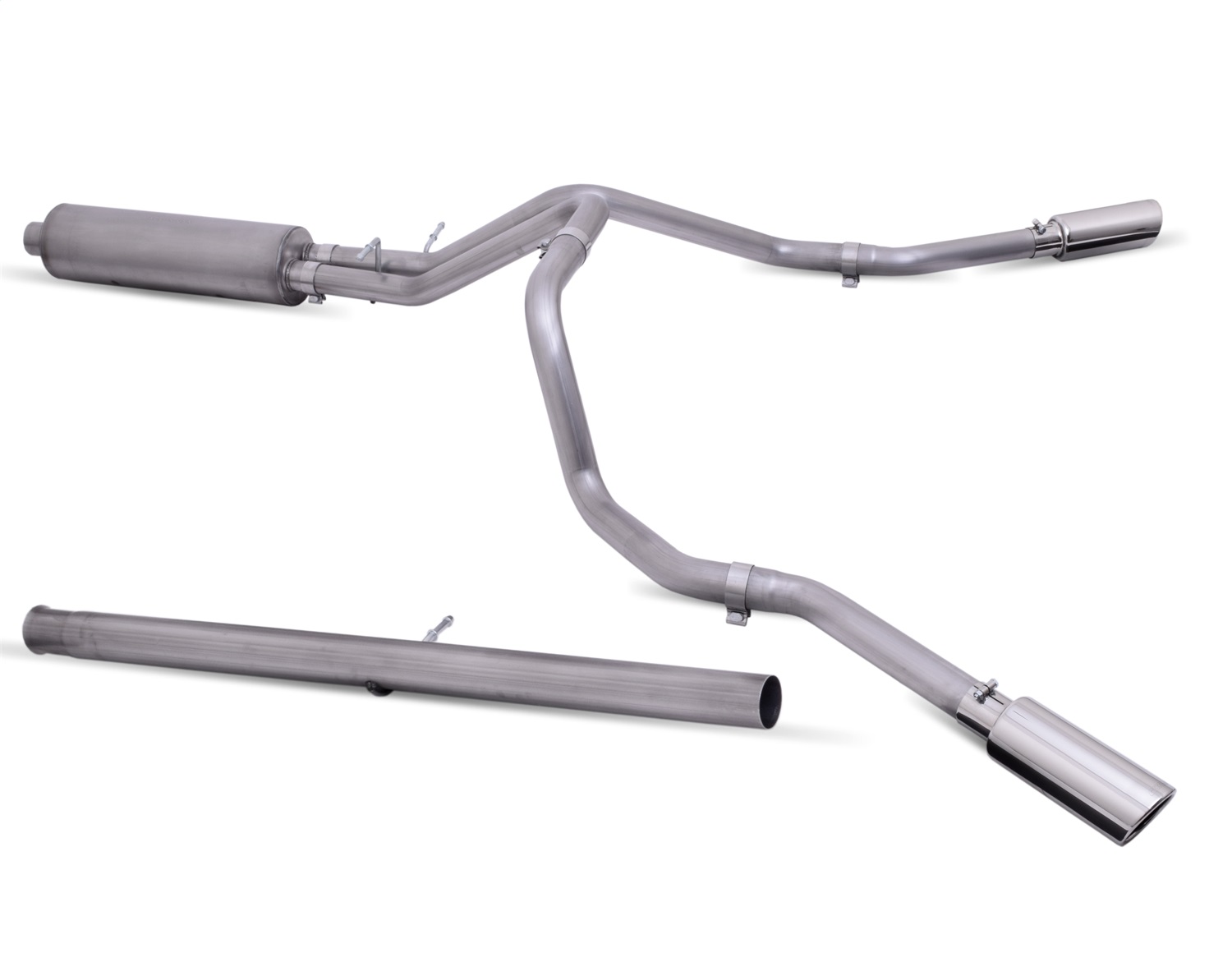 Made to last the new Chevy Silverado Gibson Exhaust Dual Extreme Cat-Back System is here. For the extremist who wants to take their truck to the next level, this dual bolt-on Cat back system is for you. This system exists behind the rear tires at an aggressive angle with a powerful exhaust tone. You will gain bold street looks with powerful dyno tuned and tested street performance gains. You can expect to experience gains on average of 15-20 horsepower. Gibson muffler provides a mean performance sound and complemented with polished 4.0 in. Rolled Stainless Tips. Easy bolt-on installation. No welding required. Includes stainless band clamps. Backed by a Lifetime Limited Warranty. If you want Extreme, this system is it.