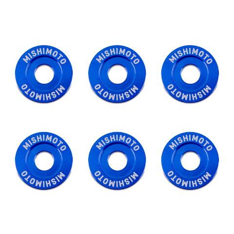 You've had your fenders off on multiple occasions, and as a result, the hardware is mismatched, corroded, and looking rough. Luckily, Mishimoto has you covered with our all-new fender washer kit. A fender washer replacement is a small, subtle upgrade that's an easy way to significantly improve the aesthetics of your engine bay. Mishimoto fender washers are constructed from CNC-machined 6061 aluminum with a durable corrosion-resistant anodized coating. Our anodized coating is available in 7 different color options, providing a perfect match for any engine bay color scheme. Looking to stylize another area of your car? This washer set is not limited to engine bay use. It's applicable in any location where M6 hardware is used, including exterior body panels or interior accents. As with all our products, this fender washer kit includes the Mishimoto Lifetime Warranty.