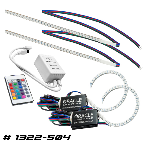 The ColorSHIFT Halo Kit can produce any color including whites from 3000K-15000K with the push of a button. This allows the user to dial-in the exact color rings that they desire. These 3-Chip 5050 SMD rings are BRIGHT, and for some they may be too bright, that is why (for the first time) the user has full control over the ring brightness. ORACLE SMD or "Surface Mount Diode" Halos utilize an advanced type of LED chip that can produce brilliant light output while only consuming a small amount of power. The SMD chips are installed onto a CAD designed 6-layer PCB (Printed Circuit Board) which is very sturdy and will not break if pressured. The PCB can easily be mounted to a headlight housing using the pre-installed 3M adhesive tape backing.
