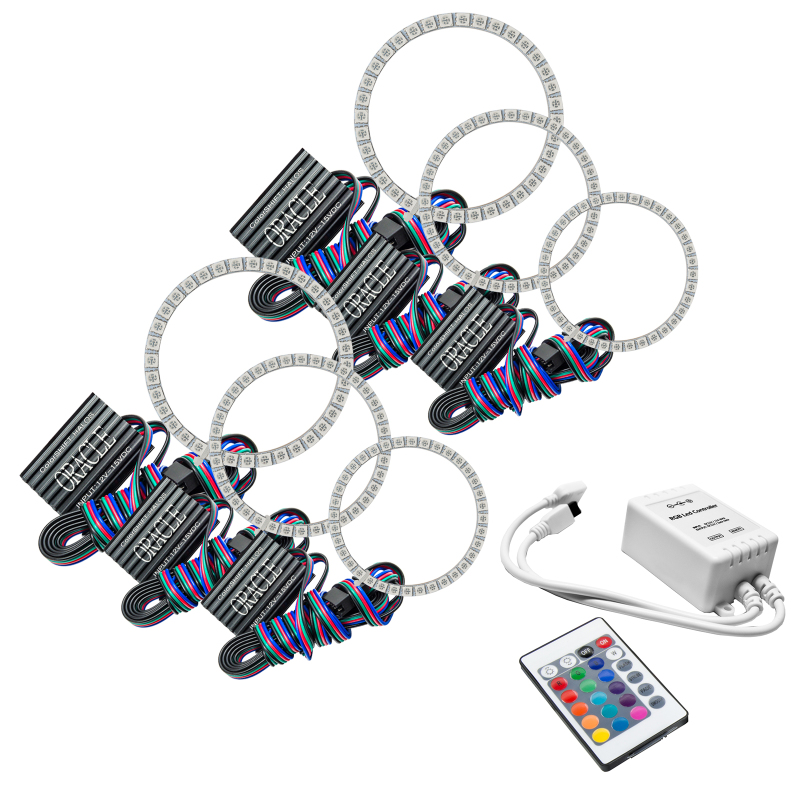 The ColorSHIFT Halo Kit can produce any color including whites from 3000K-15000K with the push of a button. This allows the user to dial-in the exact color rings that they desire. These 3-Chip 5050 SMD rings are BRIGHT, and for some they may be too bright, that is why (for the first time) the user has full control over the ring brightness. ORACLE SMD or "Surface Mount Diode" Halos utilize an advanced type of LED chip that can produce brilliant light output while only consuming a small amount of power. The SMD chips are installed onto a CAD designed 6-layer PCB (Printed Circuit Board) which is very sturdy and will not break if pressured. The PCB can easily be mounted to a headlight housing using the pre-installed 3M adhesive tape backing.