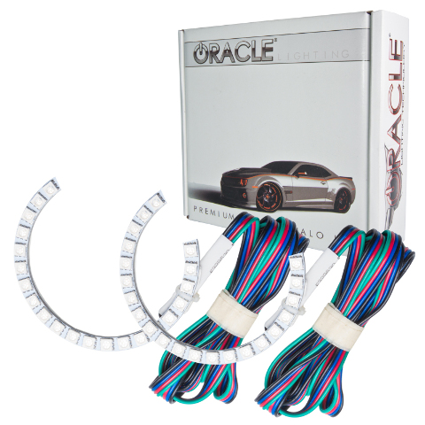 The ColorSHIFT Halo Kit can produce any color including whites from 3000K-15000K with the push of a button. This allows the user to dial-in the exact color rings that they desire. These 3-Chip 5050 SMD rings are BRIGHT, and for some they may be too bright, that is why (for the first time) the user has full control over the ring brightness. ORACLE SMD or "Surface Mount Diode" Halos utilize an advanced type of LED chip that can produce brilliant light output while only consuming a small amount of power. The SMD chips are installed onto a CAD designed 6-layer PCB (Printed Circuit Board) which is very sturdy and will not break if pressured. The PCB can easily be mounted to a headlight housing using the pre-installed 3M adhesive tape backing.