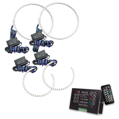 The ColorSHIFT Halo Kit can produce any color including whites from 3000K-15000K with the push of a button. This allows the user to dial-in the exact color rings that they desire. These 3-Chip 5050 SMD rings are BRIGHT, and for some they may be too bright, that is why (for the first time) the user has full control over the ring brightness. ORACLE SMD or "Surface Mount Diode" Halos utilize an advanced type of LED chip that can produce brilliant light output while only consuming a small amount of power. The SMD chips are installed onto a CAD designed 6-layer PCB (Printed Circuit Board) which is very sturdy and will not break if pressured. The PCB can easily be mounted to a headlight housing using the pre-installed 3M adhesive tape backing.