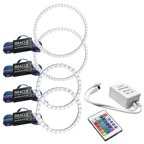 The ColorSHIFT Halo Kit can produce any color including whites from 3000K-15000K with the push of a button. This allows the user to dial-in the exact color rings that they desire. These 3-Chip 5050 SMD rings are BRIGHT, and for some they may be too bright, that is why (for the first time) the user has full control over the ring brightness. ORACLE SMD or "Surface Mount Diode" Halos utilize an advanced type of LED chip that can produce brilliant light output while only consuming a small amount of power. The SMD chips are installed onto a CAD designed 6-layer PCB (Printed Circuit Board) which is very sturdy and will not break if pressured. The PCB can easily be mounted to a headlight housing using the pre-installed 3M adhesive tape backing.