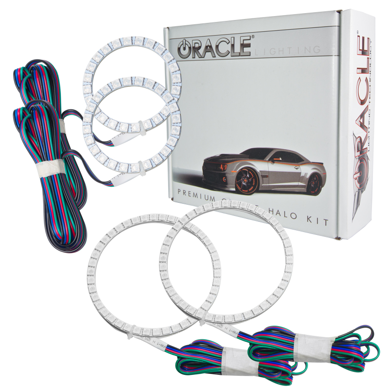 The ColorSHIFT Halo Kit can produce any color including whites from 3000K-15000K with the push of a button. This allows the user to dial-in the exact color rings that they desire. These 3-Chip 5050 SMD rings are BRIGHT, and for some they may be too bright, that is why (for the first time) the user has full control over the ring brightness. ORACLE SMD or "Surface Mount Diode" Halos utilize an advanced type of LED chip that can produce brilliant light output while only consuming a small amount of power. The SMD chips are installed onto a CAD designed 6-layer PCB (Printed Circuit Board) which is very sturdy and will not break if pressured. The PCB can easily be mounted to a headlight housing using the pre-installed 3M adhesive tape backing.