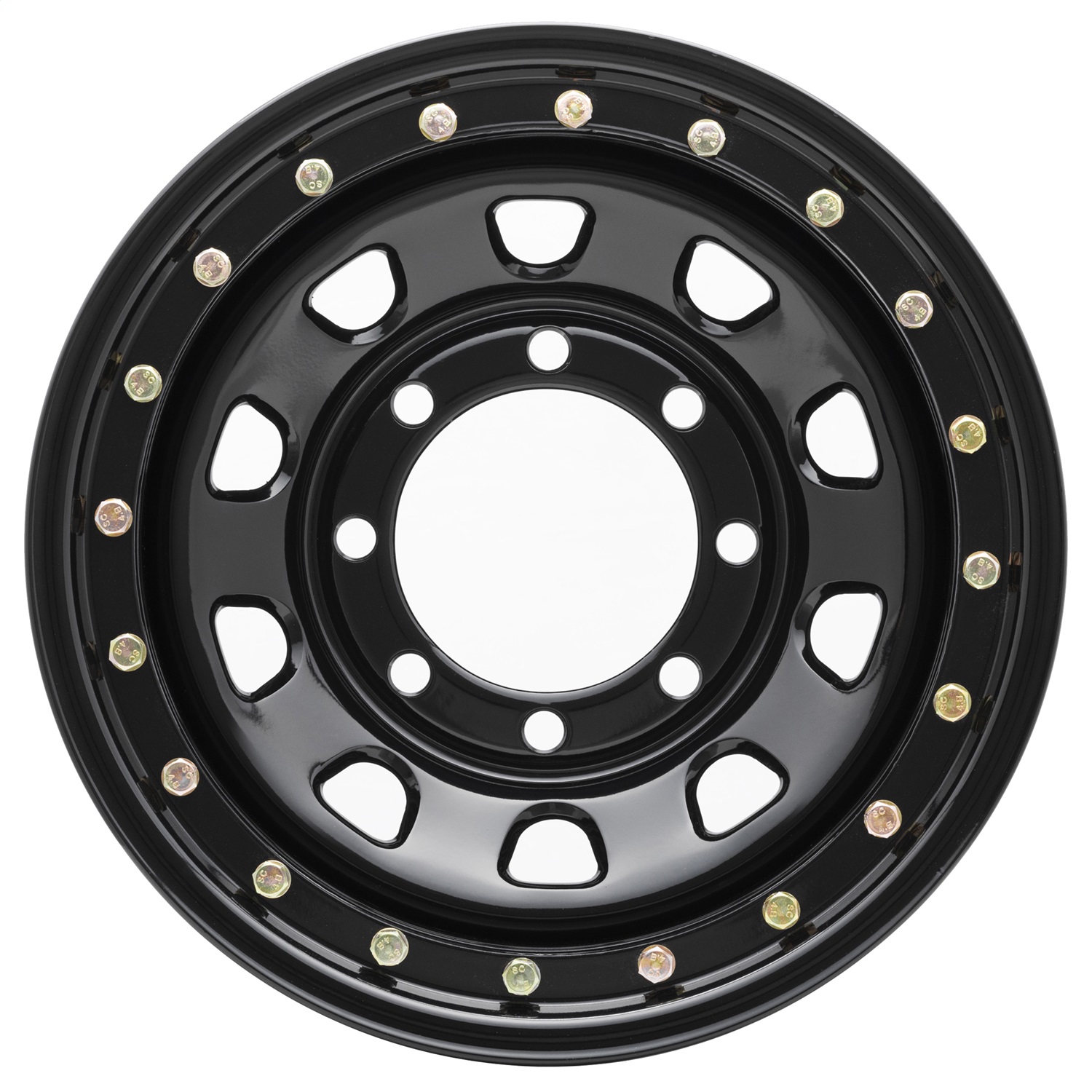 Rock Crawler Series 252 Black D-Window Wheel; Size 16x10; Bolt Pattern 8x6.5; Back Space 4 in.; Max Load 2200; Offset -38; Gloss Black Finish;
