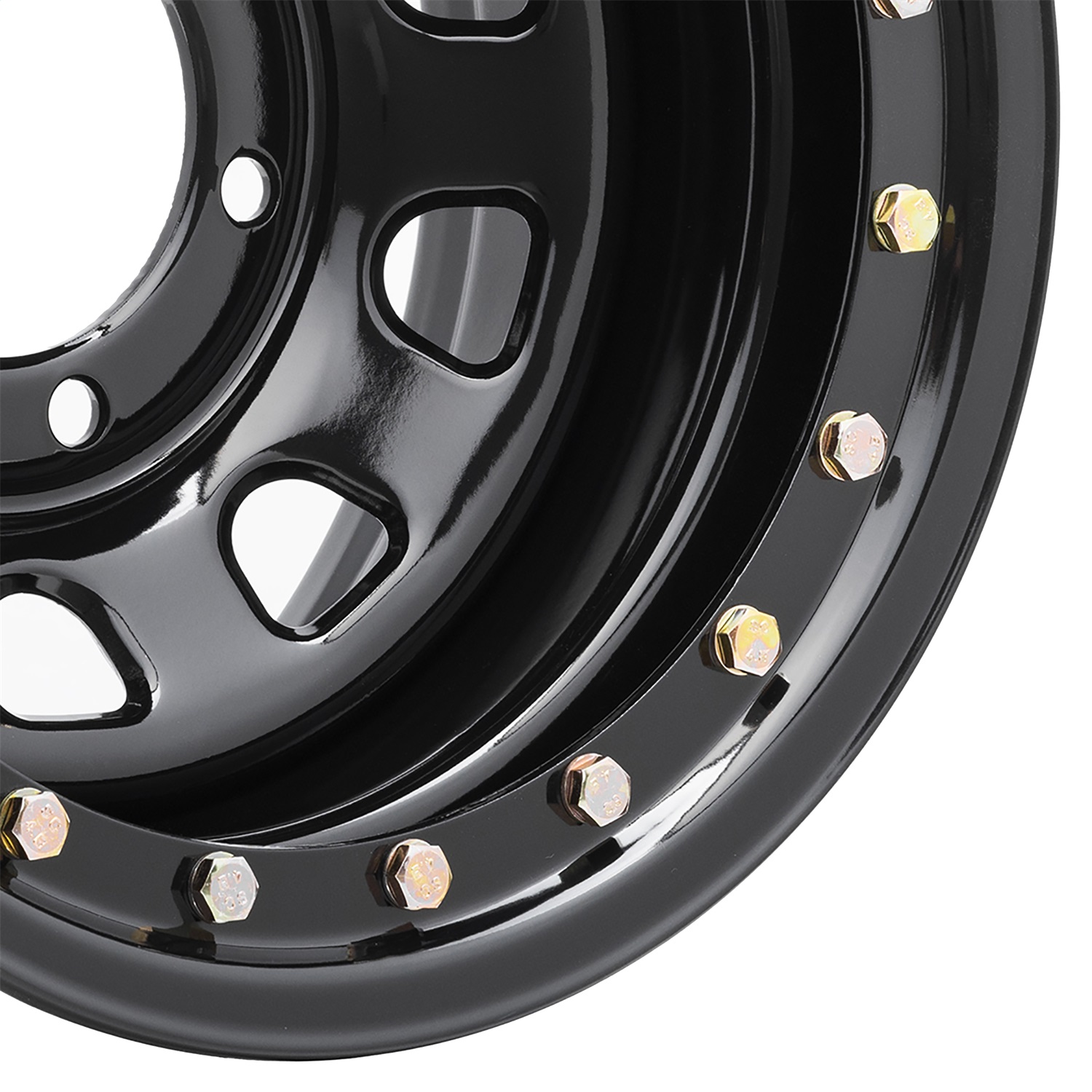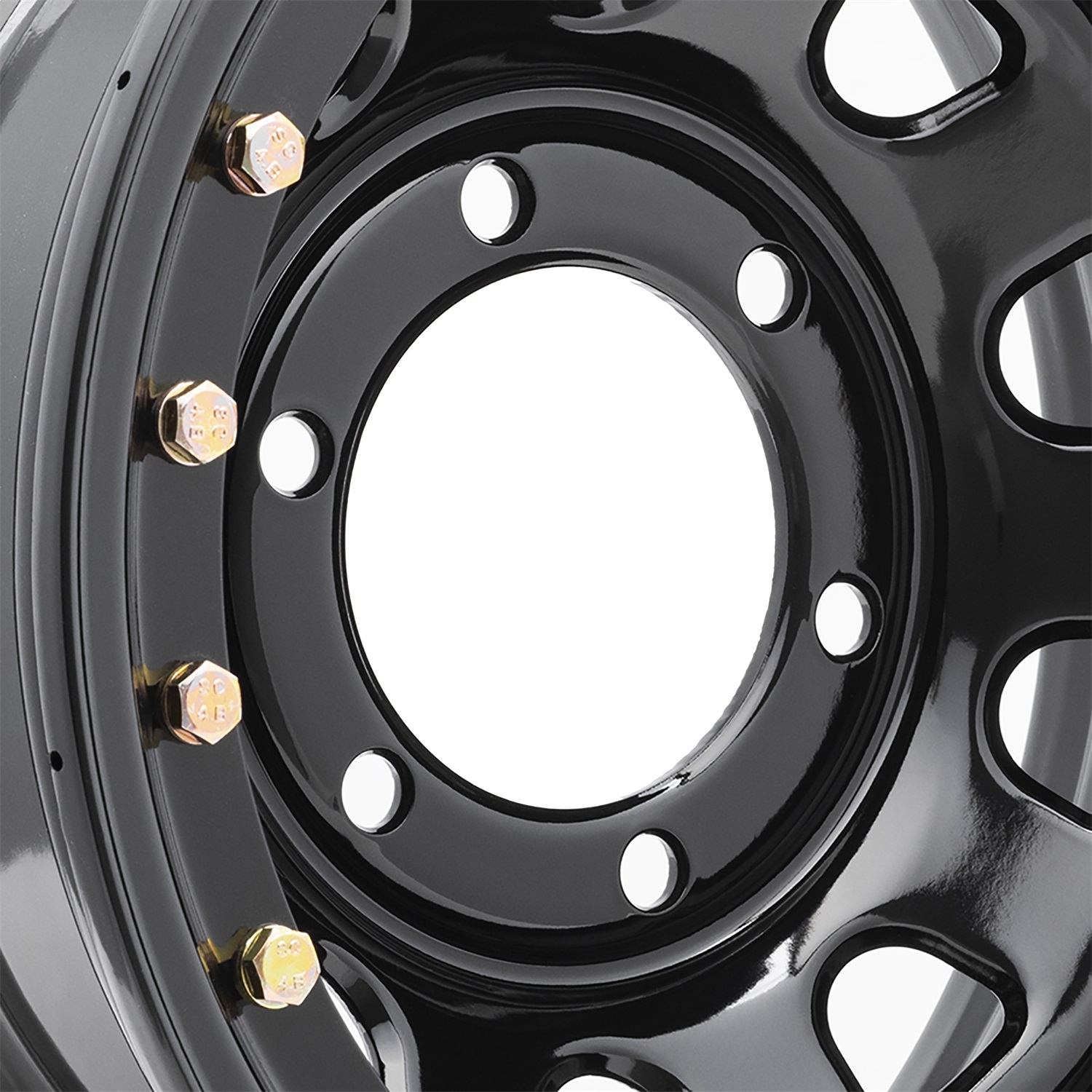 Rock Crawler Series 252 Black D-Window Wheel; Size 16x8; Bolt Pattern 6x5.5; Back Space 4.25 in.; Max Load 2200; Offset -6; Gloss Black Finish;