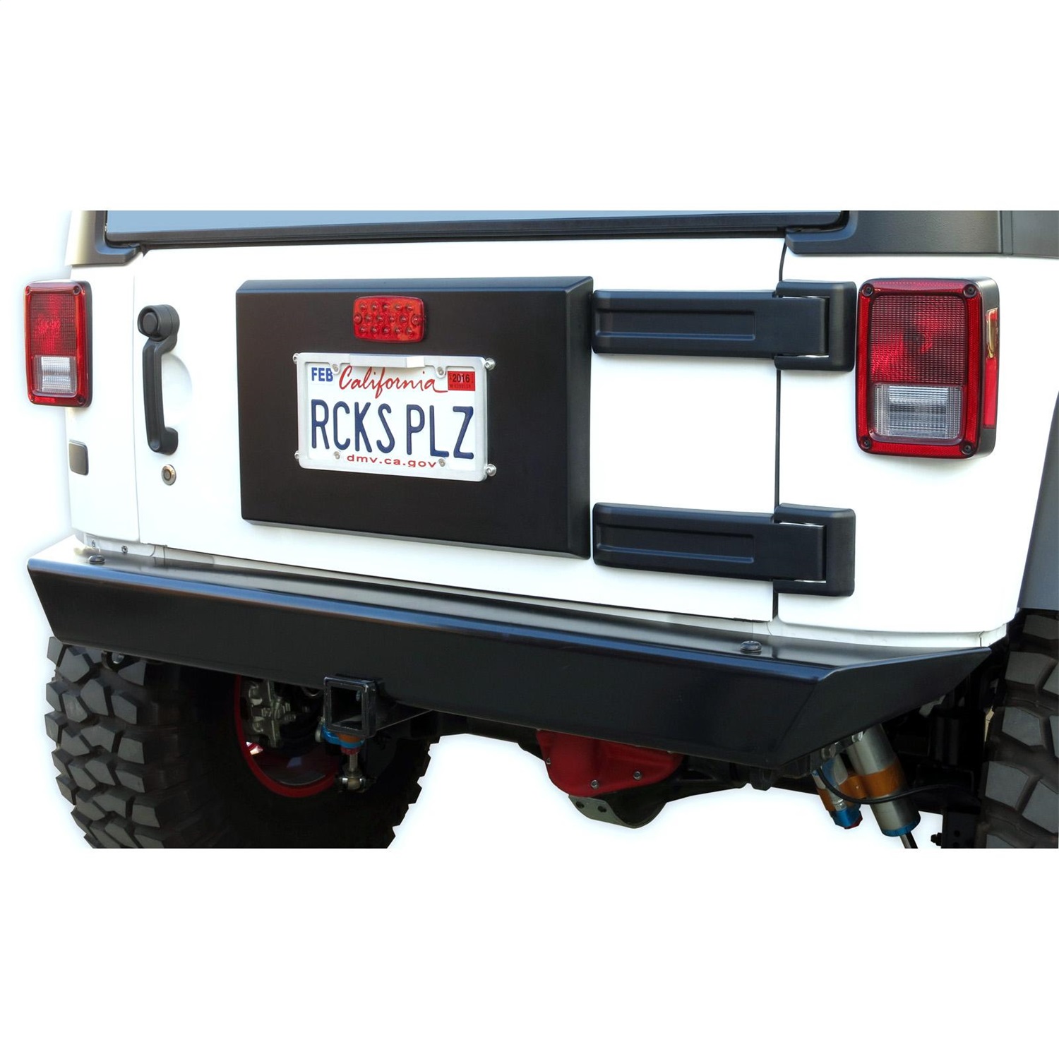 RockJocks spare tire mount delete and vent cover for JK Wranglers and Unlimiteds is a clean, simply way to clean up your tailgate after removing your spare tire. Fabricated and formed from laser cut .125 in. aluminum, powdercoated semi-gloss black and includes all mounting hardware. Features vent slots along the bottom edge so that air may escape when closing your tailgate. License plate and 3rd. brake light may be mounted onto this cover, however, provisions for mounting license plate and 3rd. brake light are not included. 3rd. brake light and license plate frame show in photo not included!
