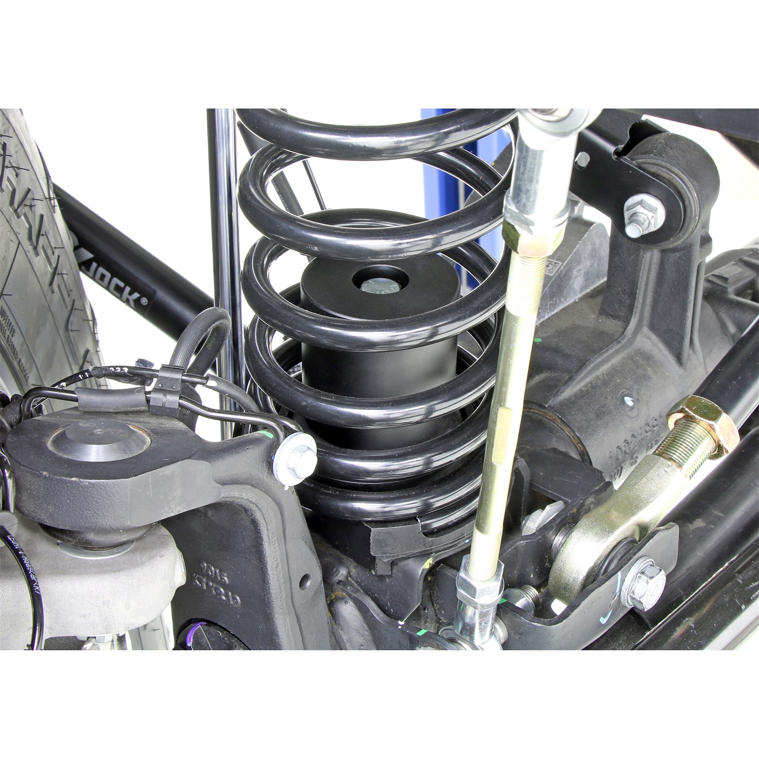 RockJocks front bump stop kit for JL Wrangler and Unlimited vehicles is designed for use with and is included in all of our JL 4 1/2 in. lift suspension systems. Kit includes billet aluminum spacers, that are powder coated semi-gloss black, and all necessary hardware. Sold as a pair of bump stops.