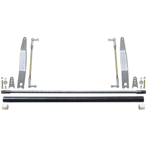 RockJocks Antirock sway bar kits are available in a universal fit configurationfor those building their own custom rigs and rock buggies. This universal kit features a 45 in. torsion bar length and bent 15 in. long billet aluminum arms. Vertical links use a 14 in. long 1/2 in. x .20 RH/LH threaded rod that can be cut down to your desired length, and the necessary 1/2 in. x 20 thread heim joint rod ends, jam nuts, and tabs to weld to your axle tube are supplied. Also supplied is the universal weld-in 1.75 in. x .095 wall DOM tube that is cut to the proper length to work with the torsion bar length, and the delrin bushings to support the bar in the tube. The 45 in. bar is a .800 in. diameter. These kits require fabricating for installation -- these are NOT bolt-on kits.