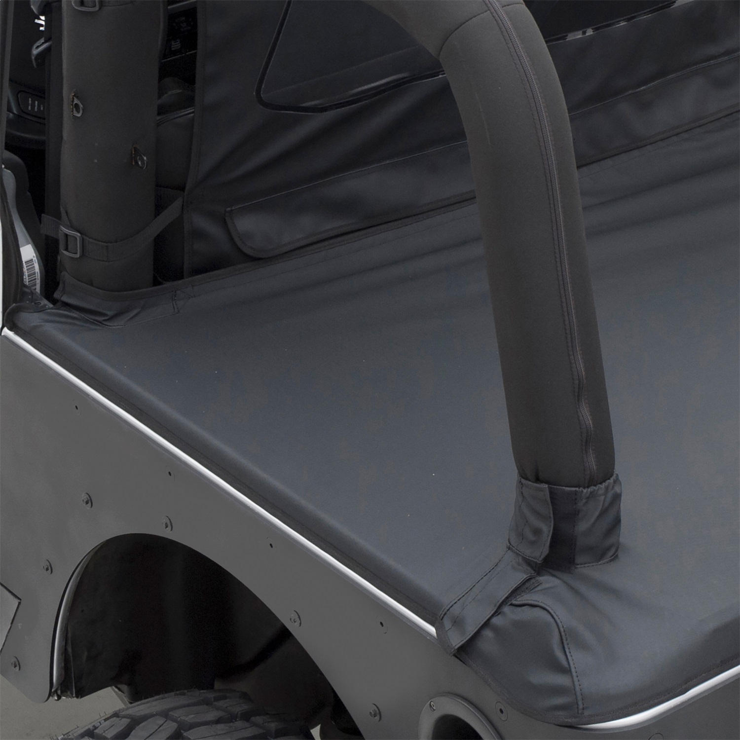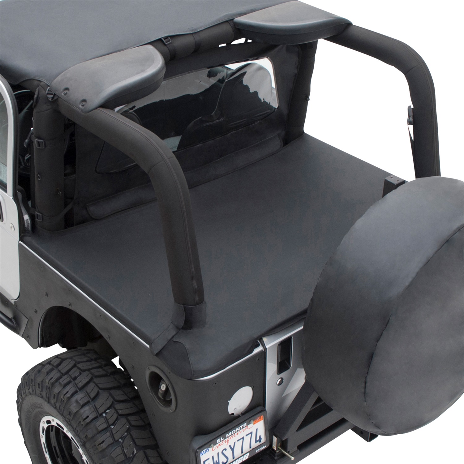 Maximize the versatility and comfort of your Jeep Wrangler with a Tonneau Cover. Smittybilt tonneau covers are crafted from the most durable components, and designed for a hassle-free installation. Custom fit for every application providing a perfect fit that will not flap in the wind. Keep your valuables safe from the elements and away from prying eyes. Seals around roll bar with hook and loop fastener.