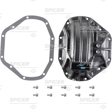 Designed and engineered for performance applications Manufactured from high-strength, nodular iron Built with ribbing to protect differential components from off-road hazards Ensures greater housing rigidity Raised fill plug for increased fluid capacity on high pinion angles Includes hardware and drain plug Includes Spicer® differential cover performance gaskets