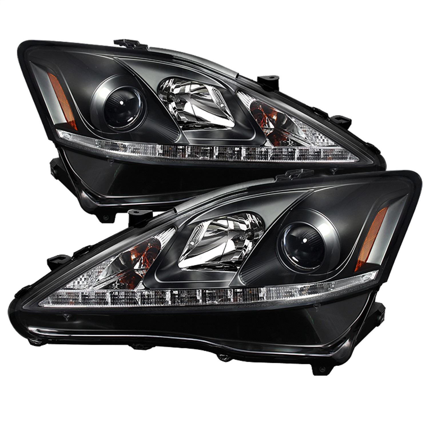 DRL Projector Headlights; Black;
