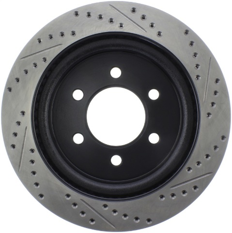 StopTech Drilled and Slotted Sport Rotors are 1-piece direct replacement brake discs for factory brake systems and stock calipers that look great behind your wheels – and offer significantly improved braking performance. The unique cross-drilling and slotting aids with heat and brake dust dispersal, prevents glazing of the pads, adds bite and improves wet and dry braking performance. Built to last, the black e-coating provides protection from corrosion and the high carbon metallurgy (in most applications) offers quieter operation, better crack resistance and increased performance.
