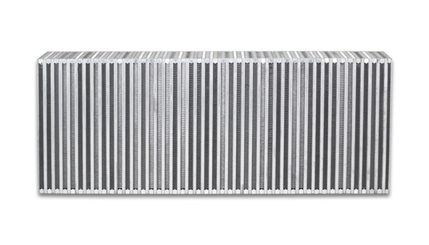 Vibrant Performance Vertical Flow Air to Air Intercooler Cores feature Bar and Plate construction and a unique louvered fin design on the ambient path that maximizes the core's available surface area, and an offset fin design on the charge path allows for minimal pressure loss.