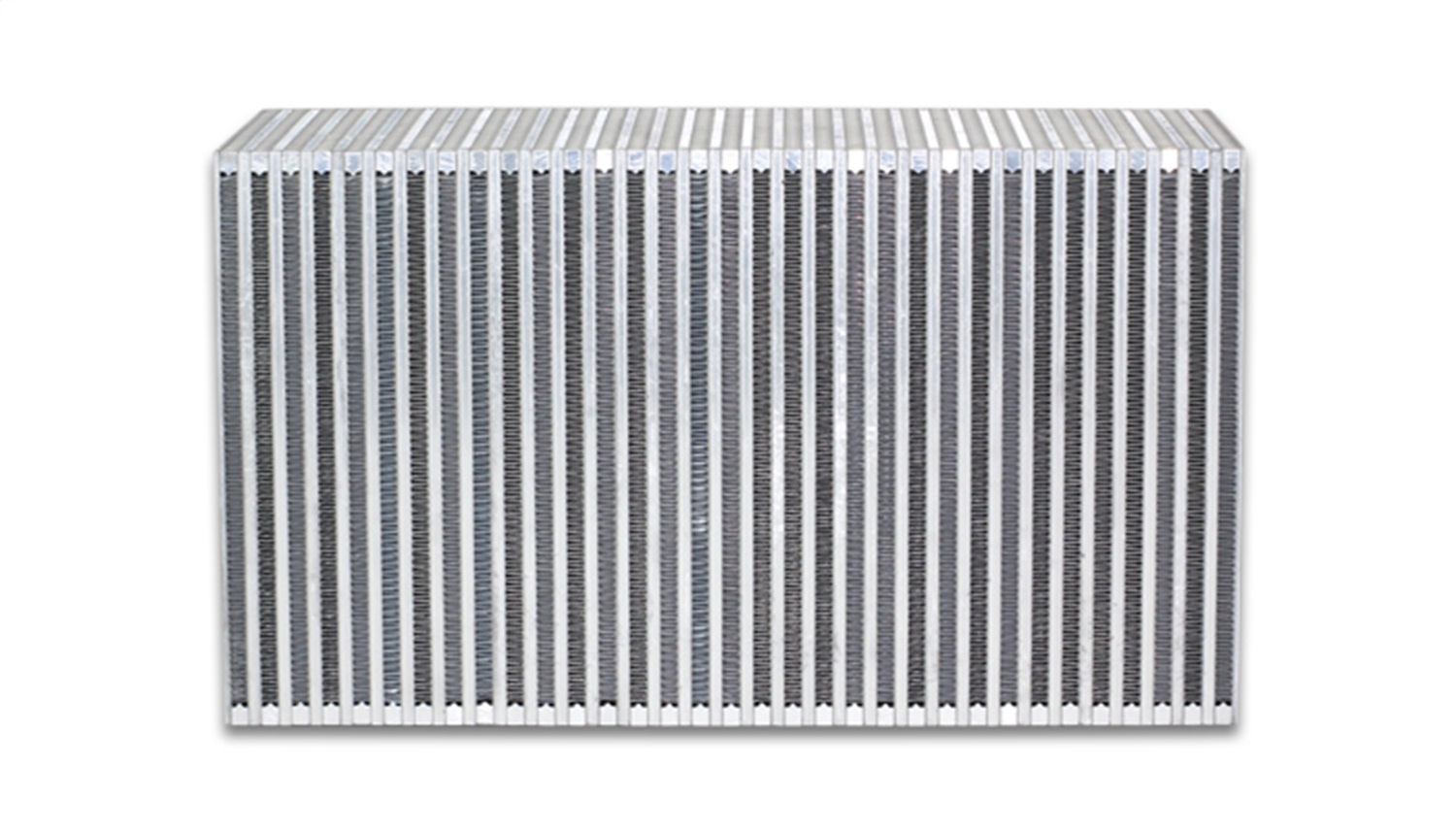 Vibrant Performance Vertical Flow Air to Air Intercooler Cores feature Bar and Plate construction and a unique louvered fin design on the ambient path that maximizes the core's available surface area, and an offset fin design on the charge path allows for minimal pressure loss.