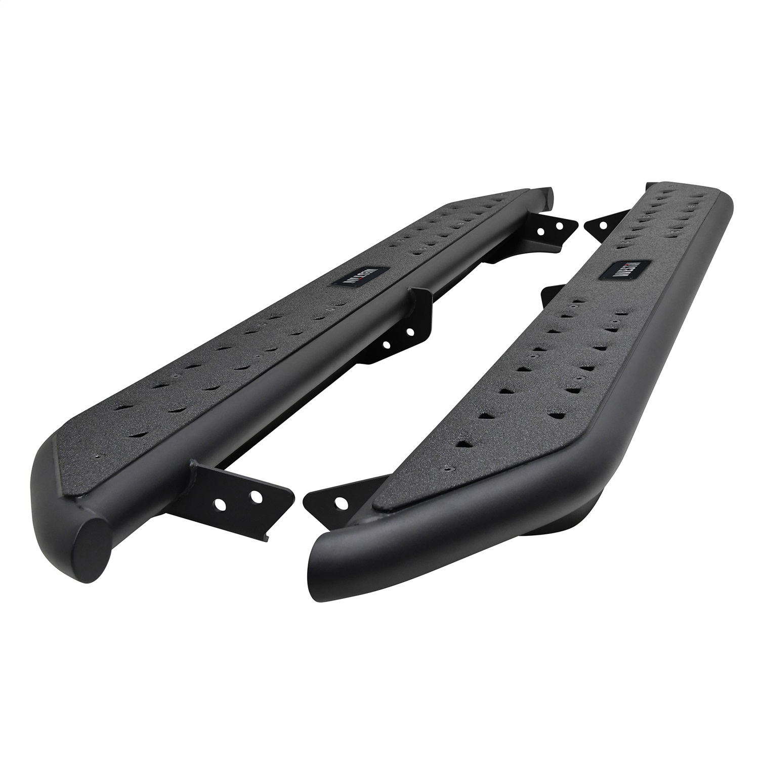 Westins Outlaw Nerf Step Bars offer the perfect balance between function and strength resulting in the ultimate rugged look designed to last and impress. Engineered to fit tightly against rocker panels, the Outlaw Nerf Step Bars provide a solid fit and superb protection while simultaneously improving vehicle cab access. Whether you are an avid overlander or simply an off-roader, rest assured you will be safely stepping into your vehicle with a 16 gauge steel coarse step surface and 2 in. diameter tubing. Featuring bolt-on installation, an e-coated base coat and textured black powder coat top finish, Westins Outlaw Nerf Step Bars are the ideal match for the toughest of conditions.