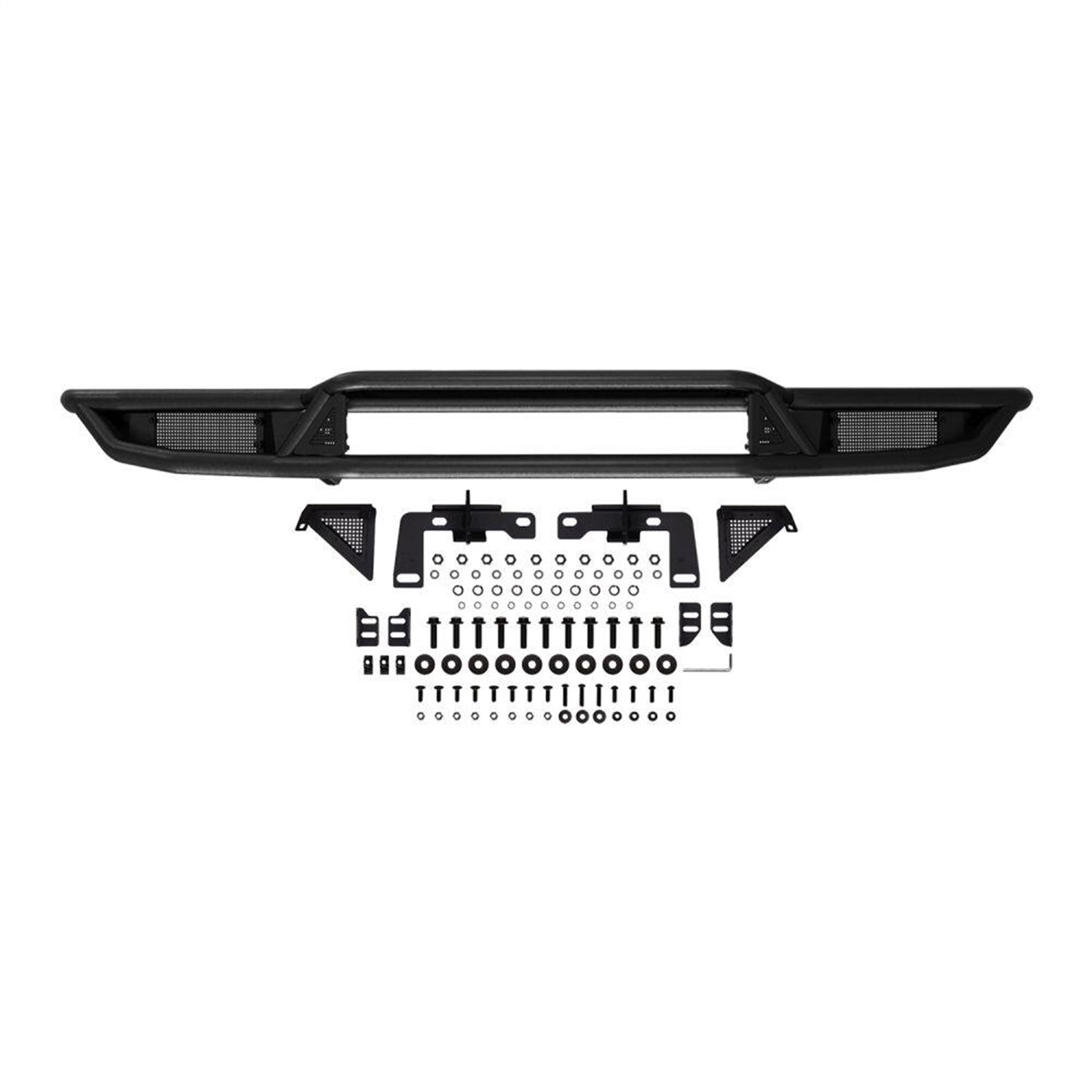 Westins Outlaw Front Bumper is made of strong 14 gauge steel that gives your truck the front end style, durability and function it needs. It features a 2 in. diameter tube frame with 1.5 in. diameter center tubes, and integrated bolt-on LED light mounts for up to two single or one double row 30 in. LED bar. Add an Outlaw Skid Plate or Outlaw LED Light Kit to enhance your vehicles look and strength on and off the road. Round LED Light Kit with Westin Auxiliary Lights or Square LED Light Kit with Westin HyperQ Auxiliary Lights sold separately. Mount kit included. Available in textured black finish.